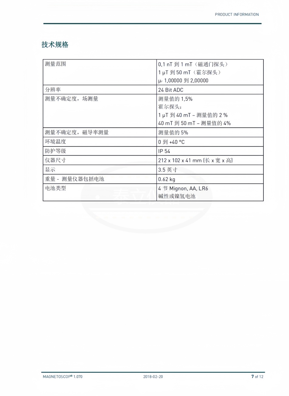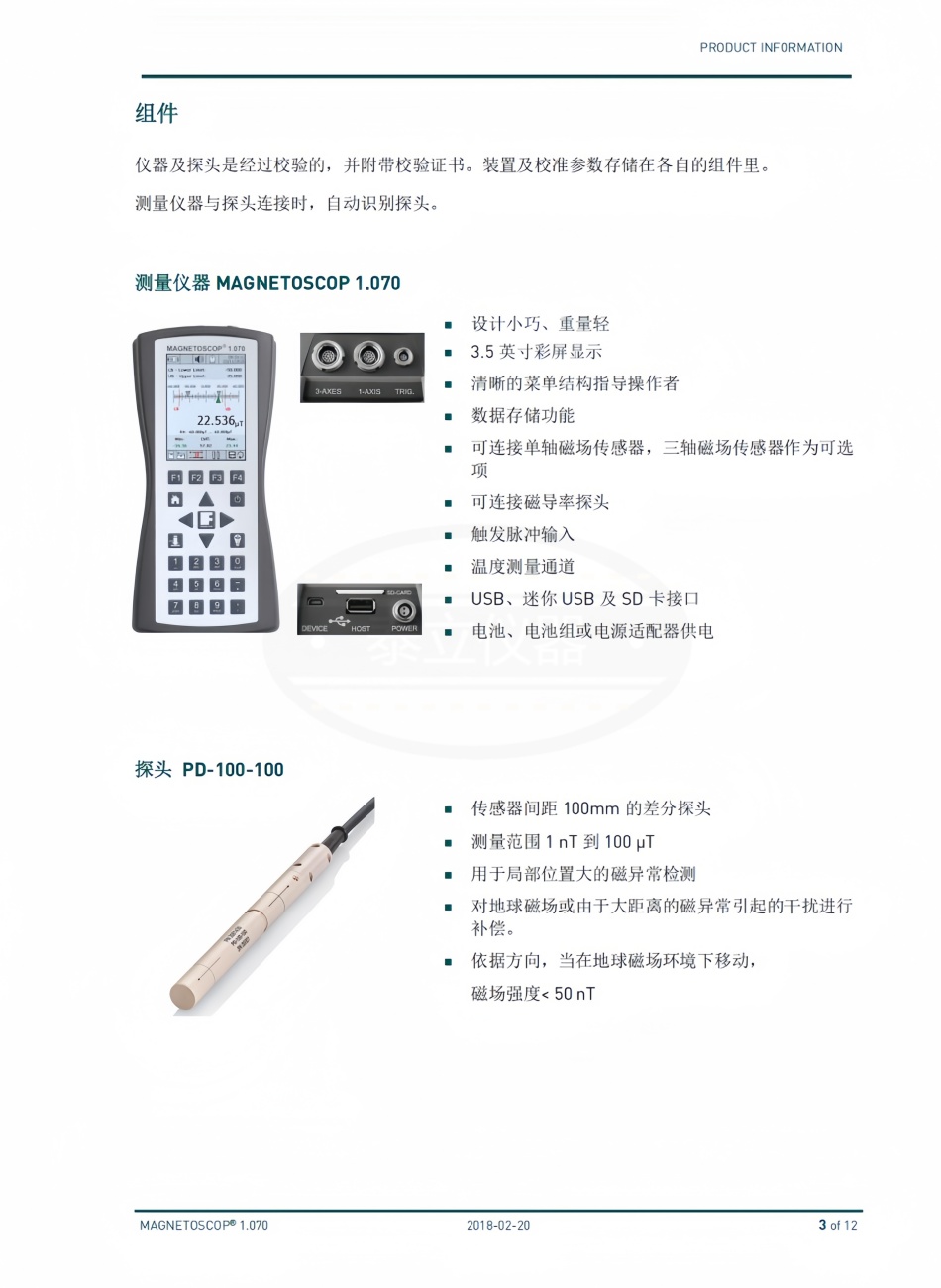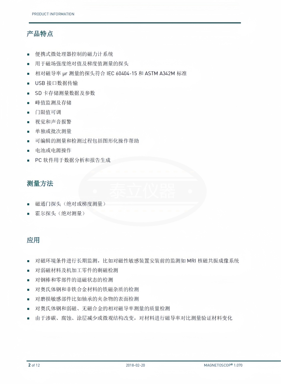 品牌:德国Foerster 型号:MAGNETOSCOP 1.070 加工定制:是 测量范围:0,1 nT 到 1 mT / µr 1,0 到 2,0 分辨率:24 Bit ADC 测量样品尺寸:不限 工作温度:0 到 +40 °C 外形尺寸:212 x 102 x 41 mm