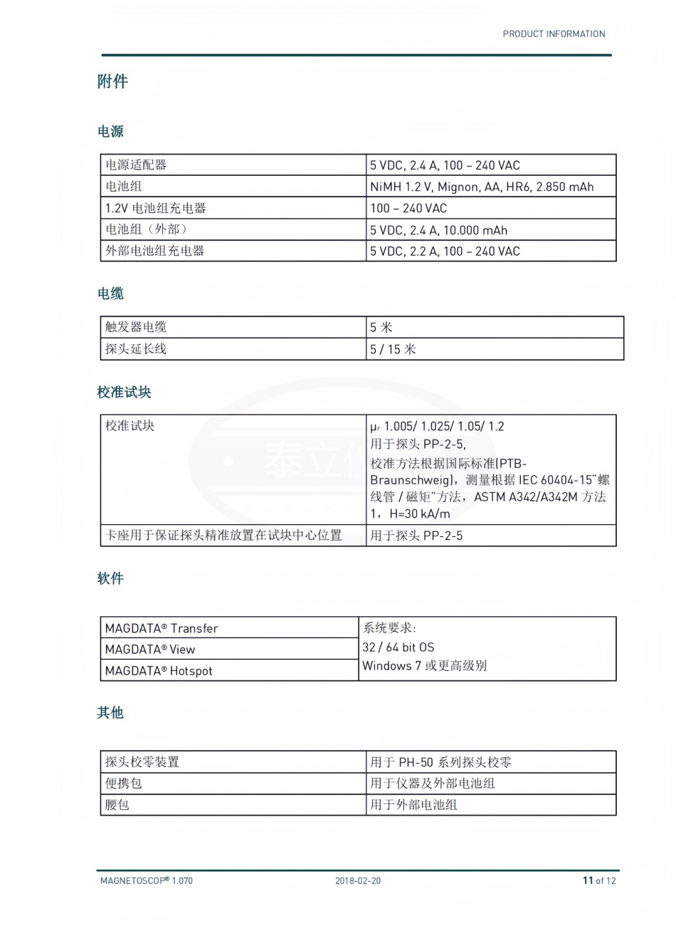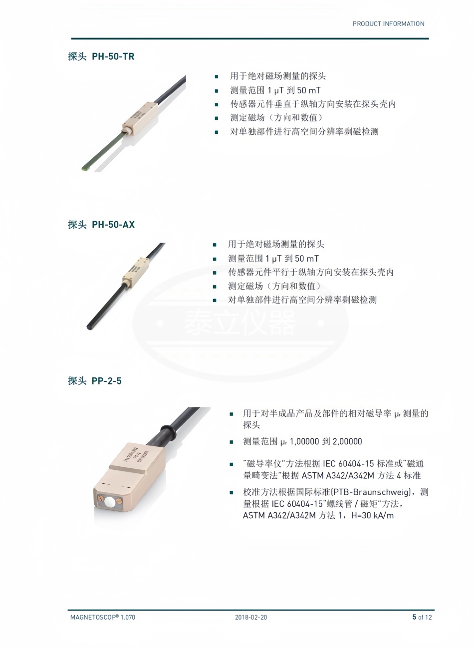 相对磁导率 µr 测量的探头符合 IEC 60404-15 和 ASTM A342M 标准