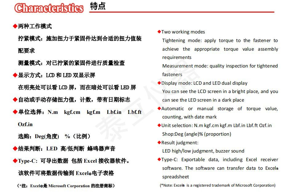 ◆单位选择:N.m kgf.cm kgf.m Lbf.in Lbf.ft Ozf.in 选购:Deg(角度) %(比例)