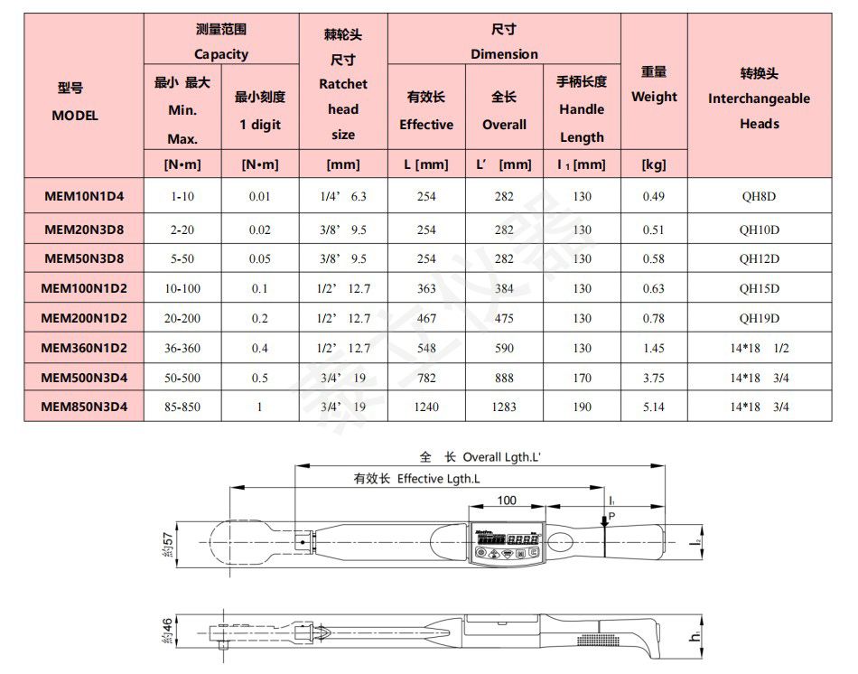 台湾MOIVE一诺双视窗数显扭矩扳手MEM 系列