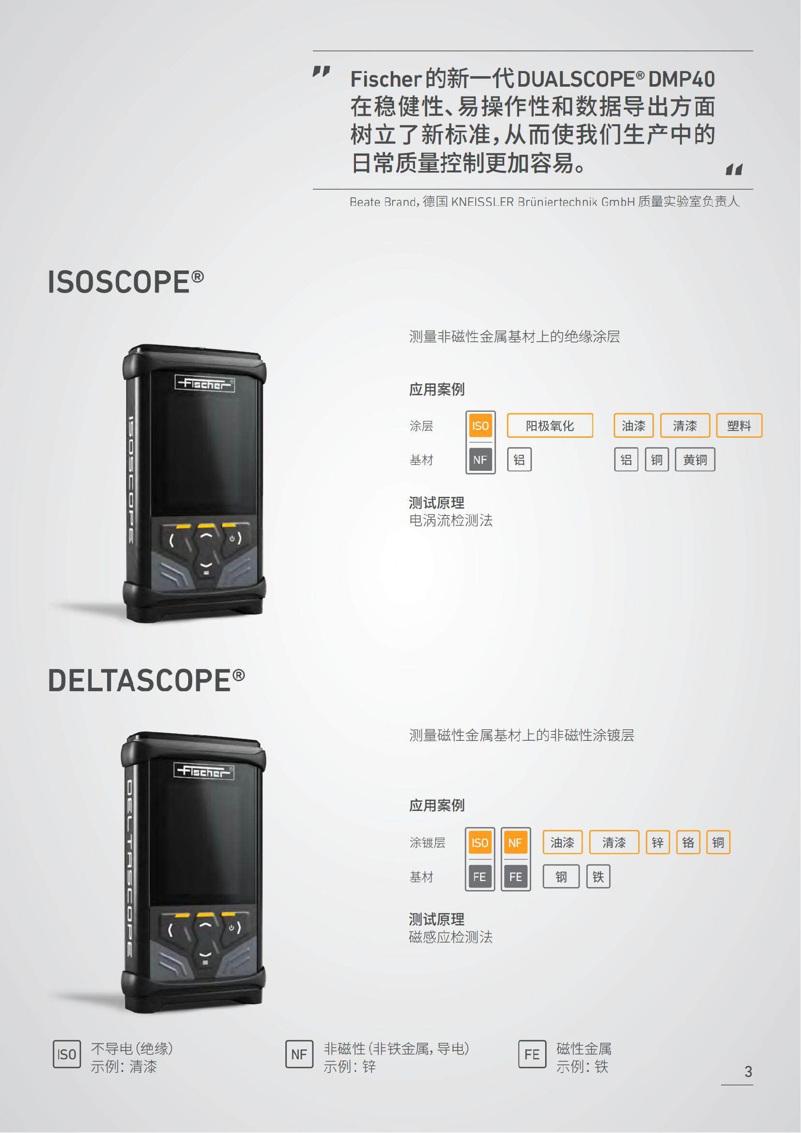 品牌:德国Fischer 加工定制:否 型号:10-40 类型:涂层 测量范围:3 mm 显示方式:数字图像 电源电压:3 V 外形尺寸:120 mm 德国Fischer菲希尔膜厚仪DMP系列描述